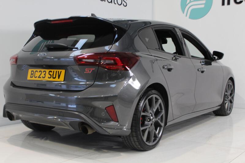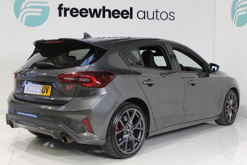 Boasting exceptionally low mileage for its 2023 registration, this Ford Focus ST is presented with a full service history and an MOT valid until February 2027. This Euro 6 compliant 2.3L petrol model comes with a clear vehicle history check and a 3 month warranty for your peace of mind. Inside, you’ll find the desirable Winter Pack, featuring heated seats and a heated steering wheel, alongside DEATC dual zone electronic automatic temperature control for perfect cabin comfort. Parking is made easier with a rear view camera, and keeping your devices powered is simple thanks to wireless charging. The Ford SYNC4 navigation system, complete with a 13.2 inch touchscreen, offers seamless integration with Android Auto and Apple CarPlay, all delivered through a premium branded sound system. This Focus ST is designed for performance, achieving 0-62mph in a swift 5.7 seconds, demonstrating its superior acceleration compared to other vehicles in its class. With only 16015 miles on the clock, this ST variant represents a compelling choice for those seeking a dynamic and well equipped driving experience.